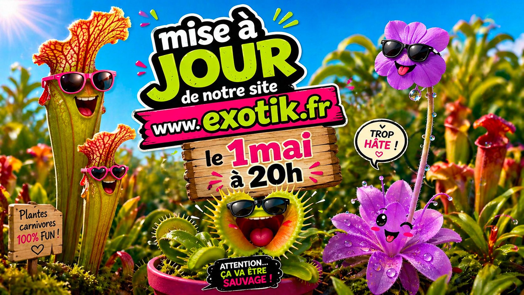 Créée en 2012 par deux passionnés, Exotik vous propose la vente en ligne de plantes carnivores de toutes sortes :